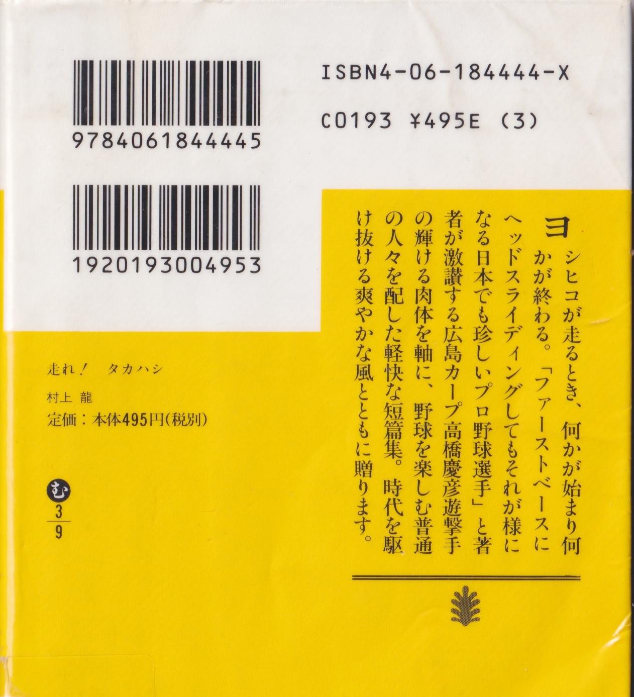 余談 「走れ!イチロー」と改題された上で映画化されているそうです。イチローの輝ける肉体を軸に頽廃的なセックスをする映画と言うのはちょっと想像できないのですが…一体どんな映画なんでしょう?本物の川口和久が出ているらしいのですが。 | |