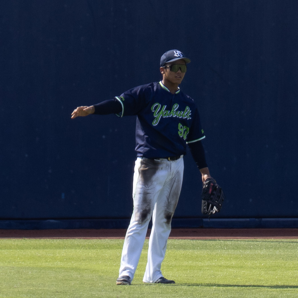 プロ8年目。本職は内野手。二軍で2試合、一軍で1試合だけライトを守ったので本ページに収載されている。19年セントラル新人王、22年セントラル打撃三冠王などの輝かしい実績を有する中堅若手内野手。来シーズンのメジャーリーグ挑戦を公言しているスワローズ不動の四番。また日本代表の主軸でもある。 開幕前に故障→復帰した試合でまた故障(4月)→復帰(7月)。結局また内野を守っている。何やかんやでスワローズの核。復帰後もバカスカ打っている。